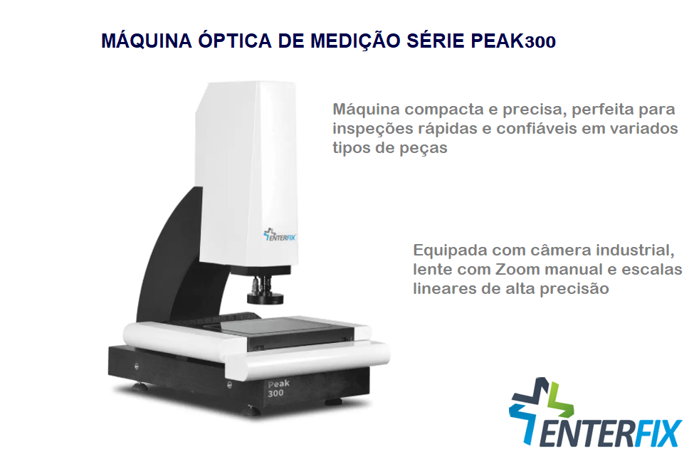 A Peak 300 é uma máquina de medição óptica compacta e precisa, ideal para inspeções rápidas e confiáveis em variados tipos de peças.